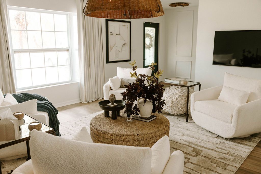 From the floors to the ceilings, the transformation speaks for itself. Every choice was purposeful and cohesive. Furniture selections span from Arhaus to RH, grounded beautifully by Bamboo flooring, creating warmth, durability, and timeless appeal. All paint colors throughout the home are by Sherwin-Williams, carefully selected to enhance light, texture, and flow.