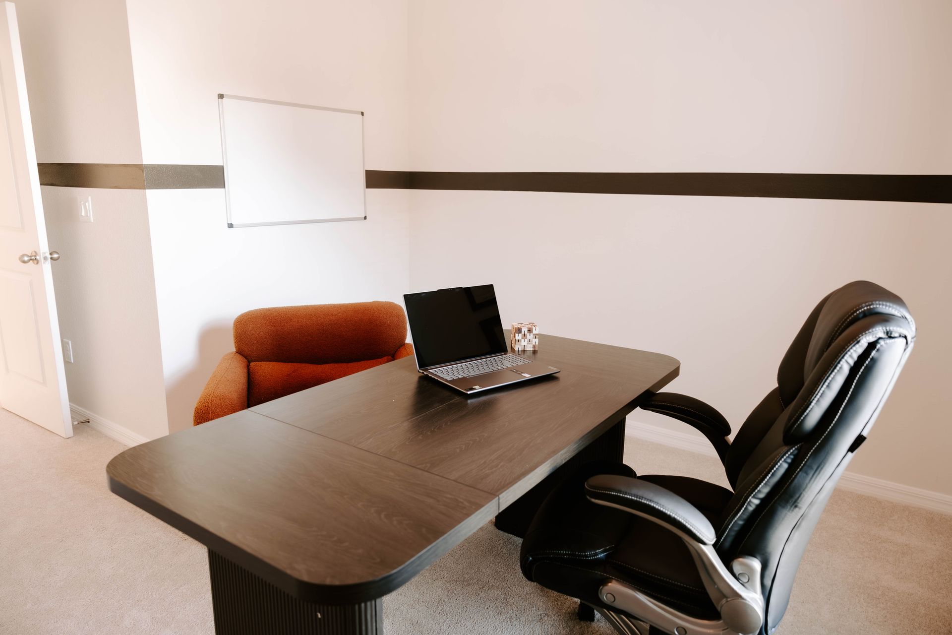 Working within a clear, budget-driven framework, we leaned into a refined mid-century modern aesthetic that balances character with broad appeal. Clean lines, intentional furnishings, and a cohesive palette created a space that feels cozy yet elevated—designed to live beautifully and rent effortlessly.