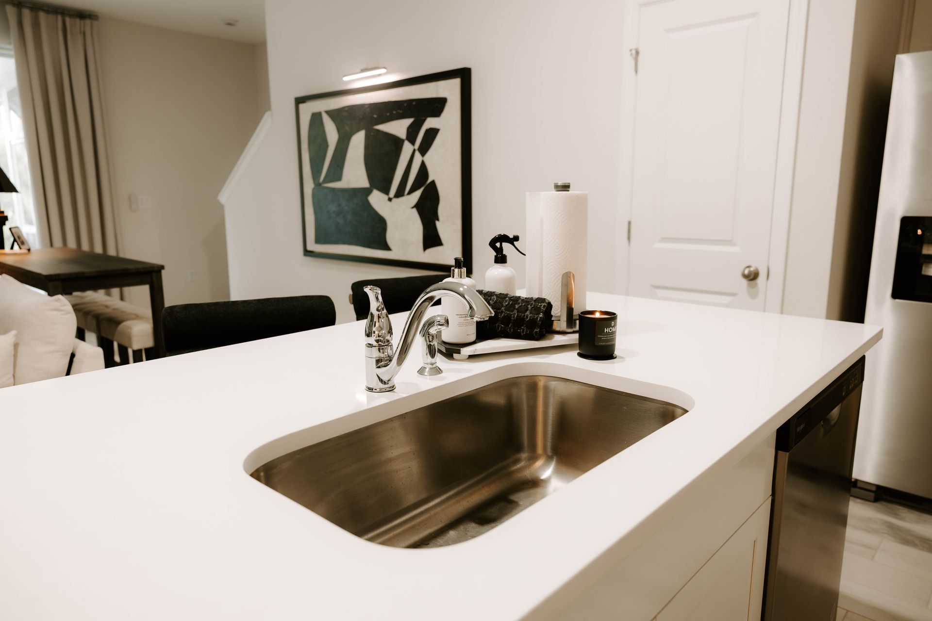 This project was thoughtfully designed for a client with a lifestyle as dynamic as his investments. A seasoned businessman who rotates between three residences throughout the year, he needed this home to serve two distinct purposes seamlessly. When in residence for extended stays, the space needed to feel warm, comfortable, and personal for both him and his dog. When rented, it needed to resonate just as strongly with young professionals seeking a stylish, well-curated place to land.