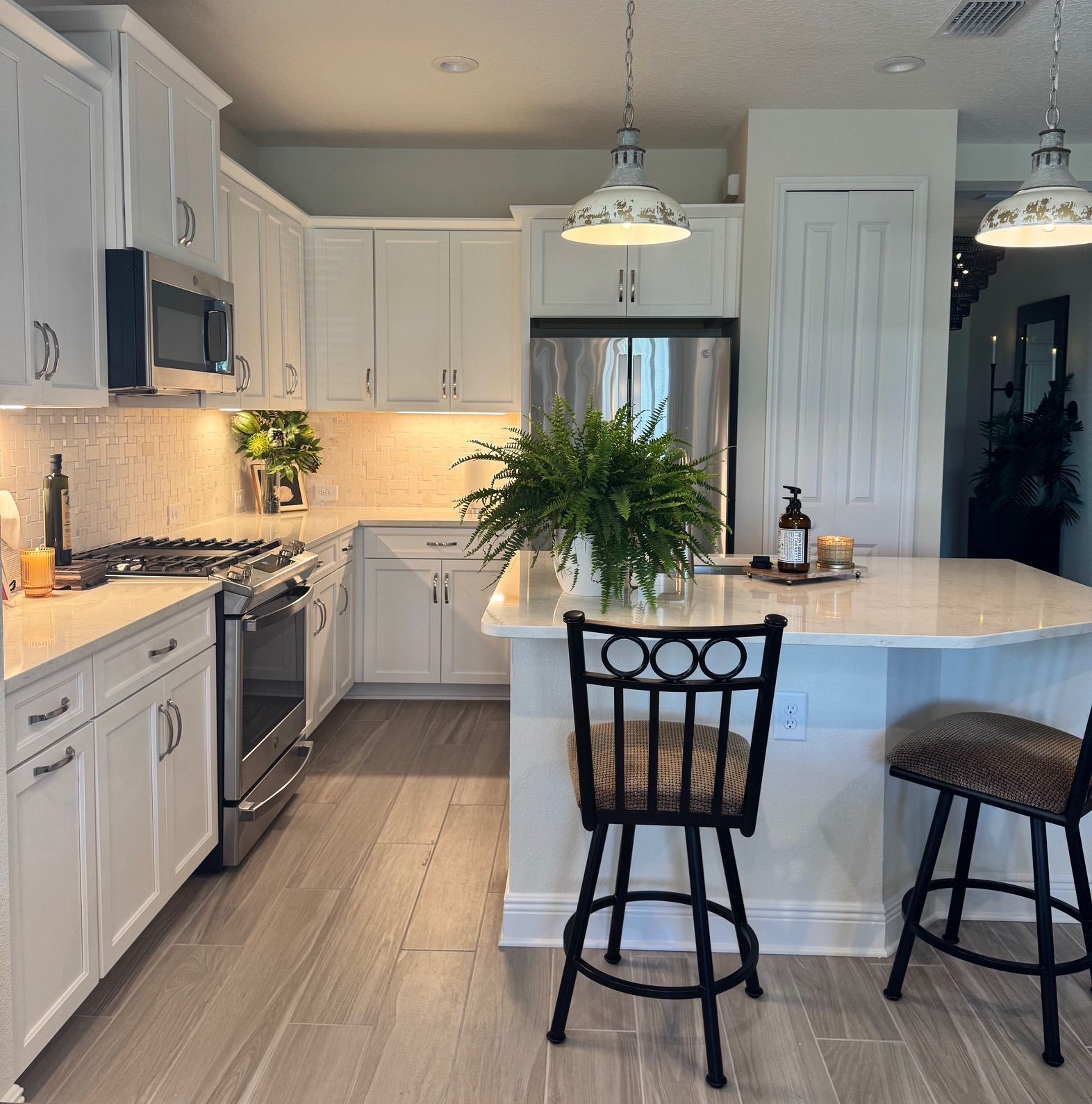 Relocating from out of state to Florida’s slice of paradise, they entrusted us with a fully turn-key, move-in-ready transformation. We thoughtfully incorporated select pieces of their own furniture — including cherished master-suite items and beloved artwork — because we truly honor the sentimental value behind meaningful pieces. That’s part of our process, and something we always welcome.